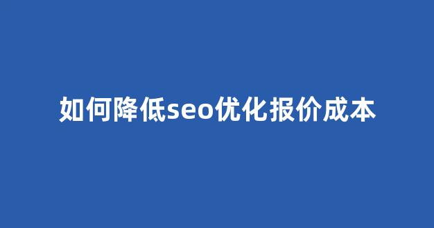 如何降低SEO优化报价成本