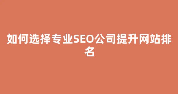 如何选择专业SEO公司提升网站排名