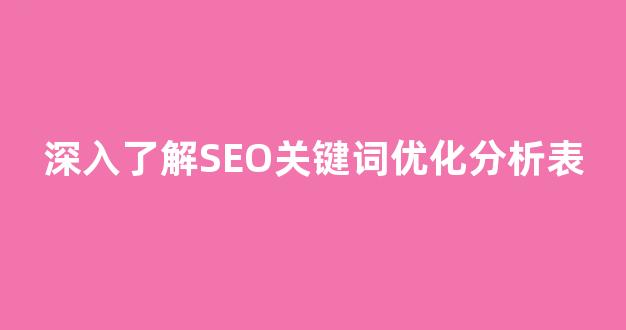 本文《深入了解SEO关键词优化分析表》发布于君君营销文章,作者:admin,如若转载,请注明出处:/news/hyzx/34734.html,否则禁止转载,谢谢配合!