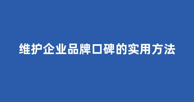 本文《维护企业品牌口碑的实用方法(维护公司品牌)》发布于君君营销文章,作者:admin,如若转载,请注明出处:/news/ppyx/35057.html,否则禁止转载,谢谢配合!