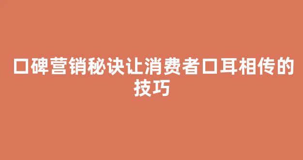 口碑营销秘诀:让消费者口耳相传的技巧