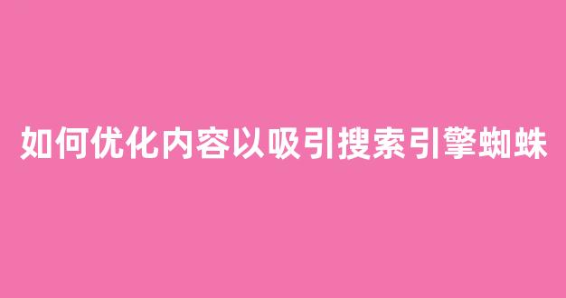 本文《如何优化内容以吸引搜索引擎蜘蛛》发布于君君营销文章,作者:admin,如若转载,请注明出处:/news/yxbk/25716.html,否则禁止转载,谢谢配合!