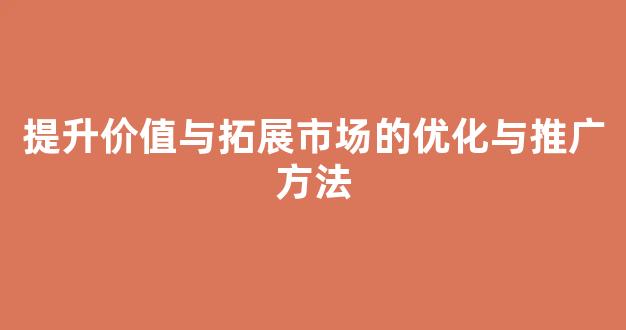 本文《提升价值与拓展市场的优化与推广方法》发布于君君营销文章,作者:admin,如若转载,请注明出处:/news/yxbk/27777.html,否则禁止转载,谢谢配合!