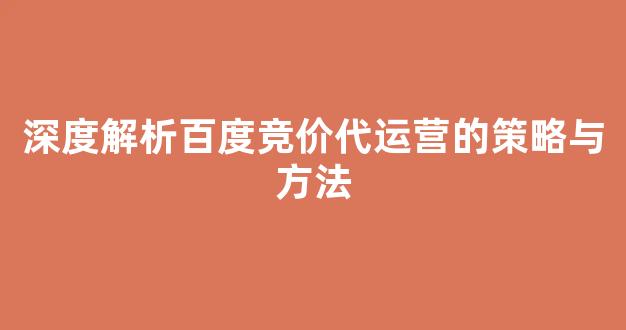 在如今的互联网营销时代,百度竞价广告已经成为了许多企业推广品牌、产品和服务的重要方式。然而,要想在竞争激烈的市场中脱颖而出,仅仅依靠简单的竞价策略显然无法满足商业目标。百度竞价代运营服务应运而生,专门帮助企业在百度搜索引擎中优化广告投放效果。本文将深度解析百度竞价代运营的策略与方法,助力企业在复杂的竞价环境中找到制胜之道。