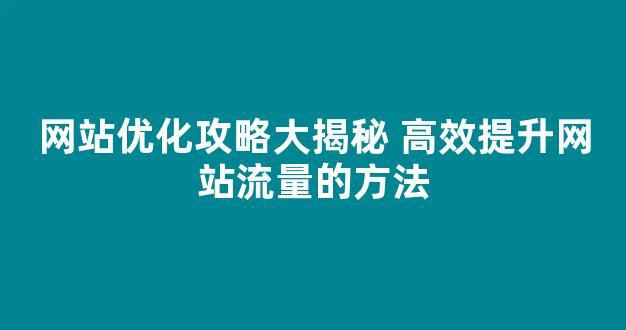 网站优化攻略大揭秘 高效提升网站流量的方法