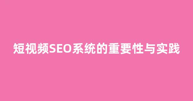 短视频SEO系统的重要性与实践