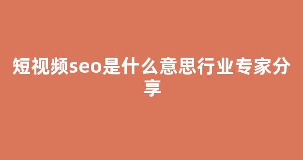 短视频SEO是什么意思:行业专家分享