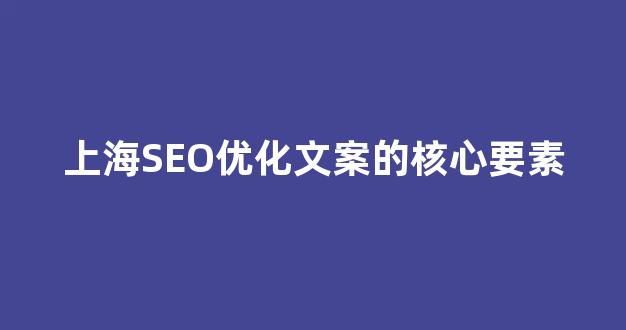 本文《上海SEO优化文案的核心要素》发布于君君营销文章,作者:admin,如若转载,请注明出处:/seo/33420.html,否则禁止转载,谢谢配合!