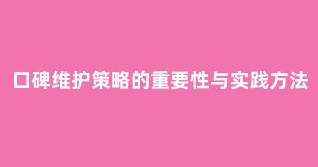 口碑维护策略的重要性与实践方法