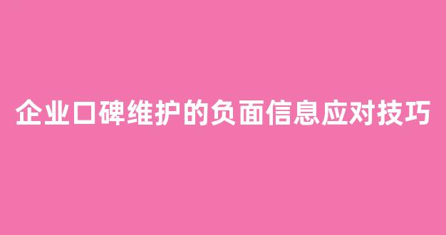企业口碑维护的负面信息应对技巧