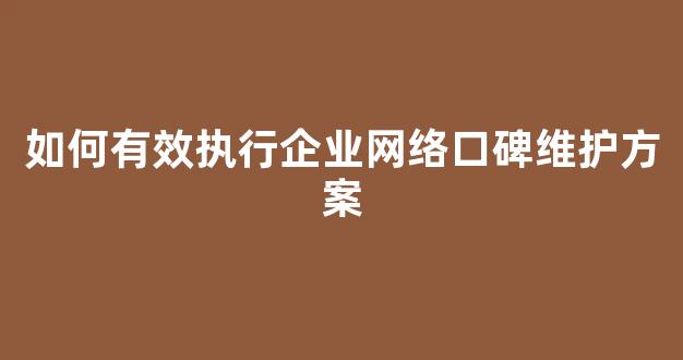 如何有效执行企业网络口碑维护方案