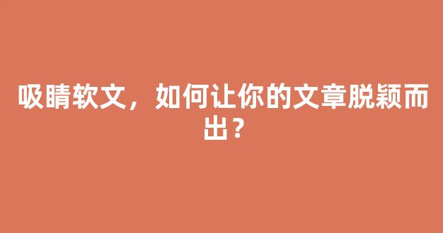 在信息泛滥的今天,如何让你的文章在众多内容中脱颖而出,吸引读者的眼球?这不仅仅是写作技巧的问题,更是SEO优化与创意的结合。无论是博客文章、社交媒体内容,还是产品推广文案,吸引读者的注意力是成功的关键。本文将从三个角度探讨如何通过吸睛软文让你的文章在竞争激烈的网络环境中脱颖而出。