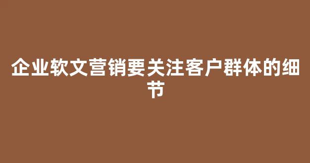 本文《企业软文营销要关注客户群体的细节》发布于君君营销文章,作者:admin,如若转载,请注明出处:/metia/xinwengao/35783.html,否则禁止转载,谢谢配合!