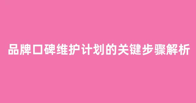 本文《品牌口碑维护计划的关键步骤解析(口碑品牌服务)》发布于君君营销文章,作者:admin,如若转载,请注明出处:/news/ppyx/20054.html,否则禁止转载,谢谢配合!