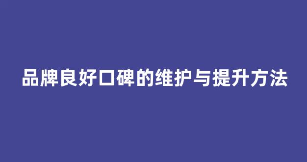 品牌良好口碑的维护与提升方法