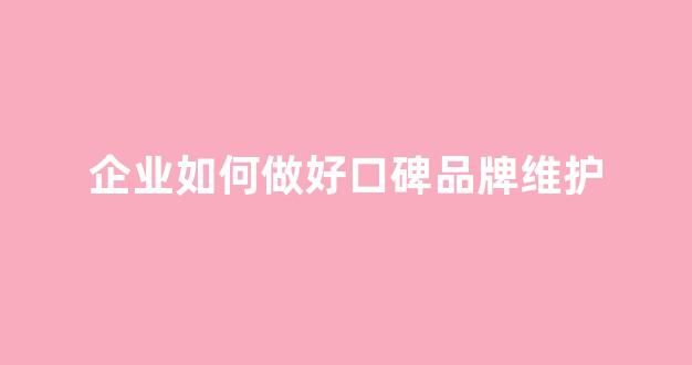 企业如何做好口碑品牌维护