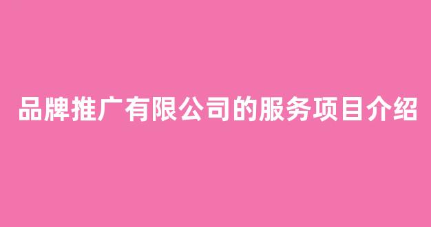 本文《品牌推广有限公司的服务项目介绍》发布于君君营销文章,作者:admin,如若转载,请注明出处:/news/ppyx/2451.html,否则禁止转载,谢谢配合!