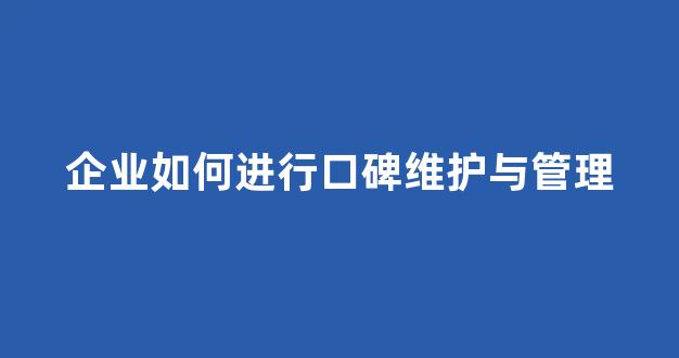 企业如何进行口碑维护与管理