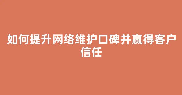 如何提升网络维护口碑并赢得客户信任