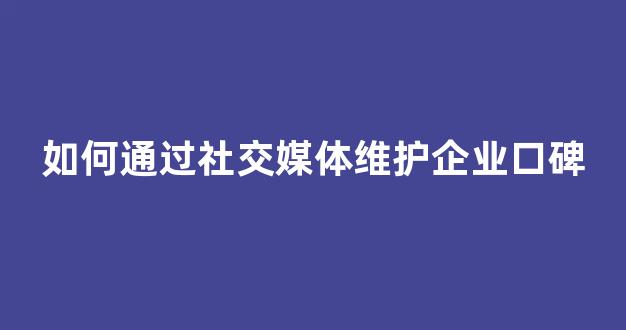 如何通过社交媒体维护企业口碑