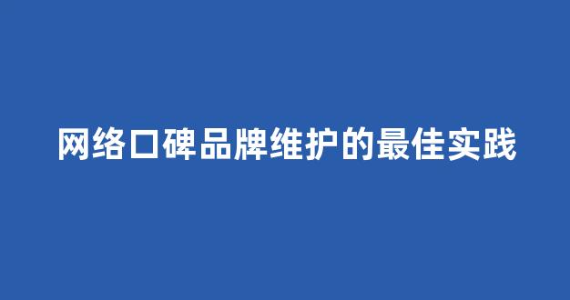 网络口碑品牌维护的最佳实践