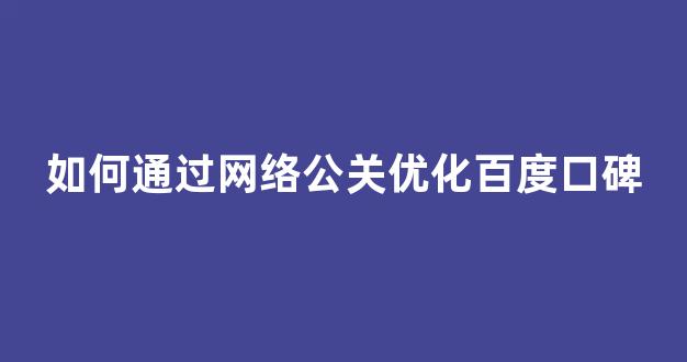 如何通过网络公关优化百度口碑