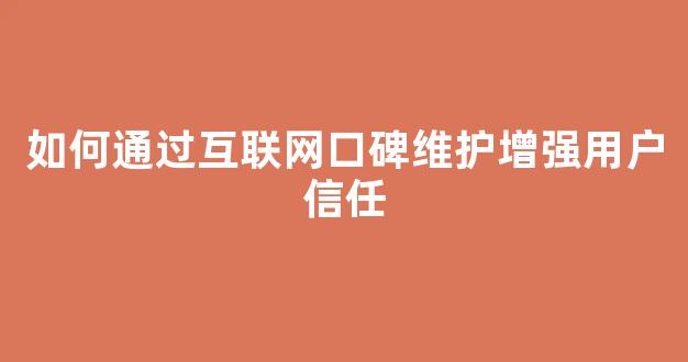 本文《如何通过互联网口碑维护增强用户信任(如何利用互联网提升自己)》发布于君君营销文章,作者:admin,如若转载,请注明出处:/news/ppyx/34174.html,否则禁止转载,谢谢配合!
