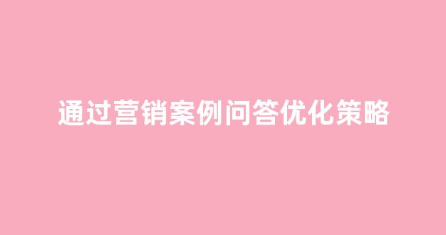 本文《通过营销案例问答优化策略(优秀的营销策略案例)》发布于君君营销文章,作者:admin,如若转载,请注明出处:/news/wdyx/2762.html,否则禁止转载,谢谢配合!