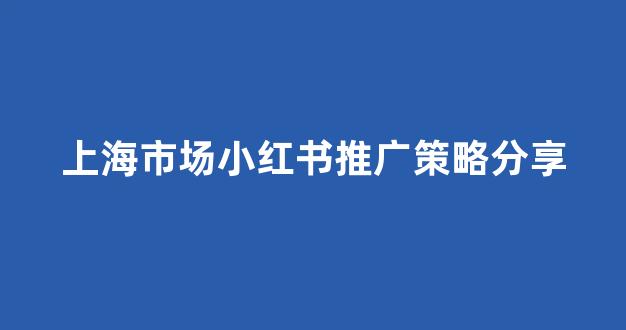 上海市场小红书推广策略分享