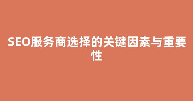 SEO优化作为一座通往成功的灯塔,指引着企业和网站在激烈的竞争中脱颖而出。然而,选择一家合适的SEO服务商,常常是许多企业面临的一大挑战。一个专业且具备高度责任感的SEO服务商不仅能够提高网站的流量,还能显著提升品牌的线上影响力。那么,在选择SEO服务商时,哪些关键因素需要被重点考虑呢?