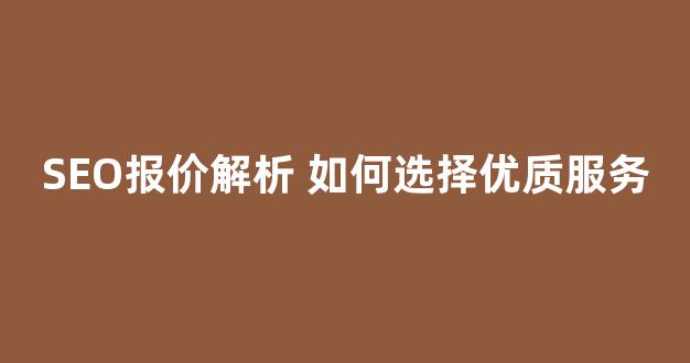 SEO(搜索引擎优化)已成为企业营销战略中不可忽视的重要组成部分。无论是初创公司,还是成熟企业,选择一项高质量的SEO服务,不仅能提升网站排名,还能带来可观的流量和转化率。那么,如何在众多的SEO报价中挑选出优质的服务呢?接下来,我们将从几个关键因素出发,为您解析选择优质SEO服务的技巧与方法。