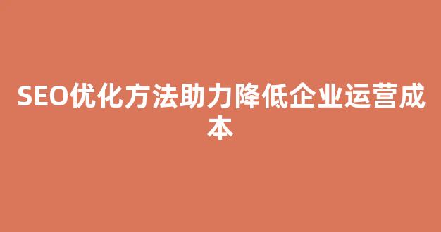 SEO优化:一种智能的运营成本削减方式