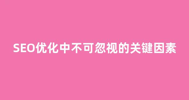 本文《SEO优化中不可忽视的关键因素》发布于君君营销文章,作者:admin,如若转载,请注明出处:/news/yxbk/20904.html,否则禁止转载,谢谢配合!