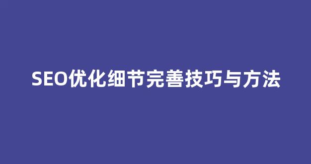 本文《SEO优化细节完善技巧与方法》发布于君君营销文章,作者:admin,如若转载,请注明出处:/news/yxbk/21259.html,否则禁止转载,谢谢配合!