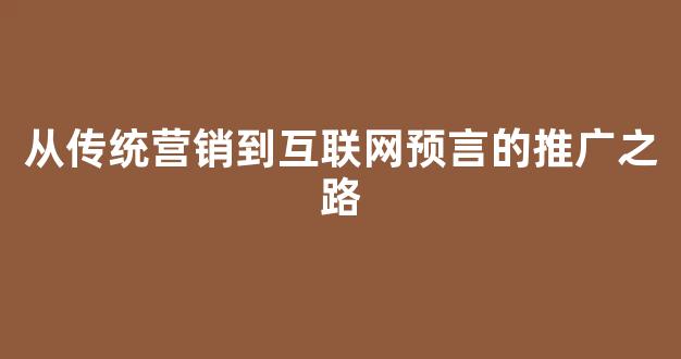 本文《从传统营销到互联网预言的推广之路》发布于君君营销文章,作者:admin,如若转载,请注明出处:/news/yxbk/21376.html,否则禁止转载,谢谢配合!