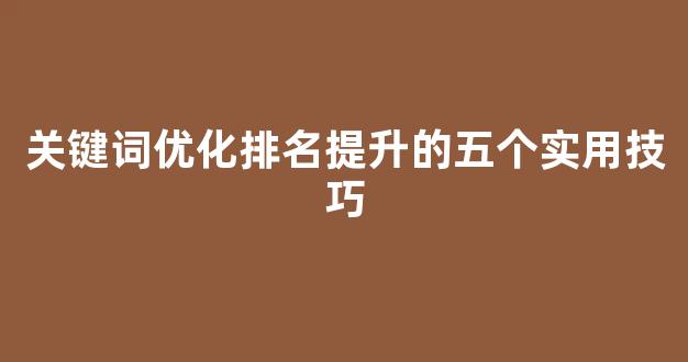 SEO优化是每个企业争夺流量、提升品牌影响力的必经之路。然而,SEO优化并非一蹴而就,它需要技巧、耐心以及对细节的精准把控。今天,我们就来分享五个提升关键词优化排名的实用技巧,让你在激烈的市场竞争中脱颖而出。