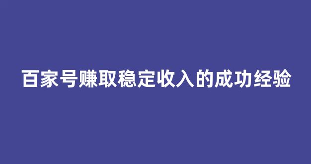 标题:通过百家号赚取稳定收入的成功经验