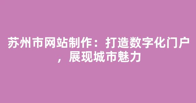 打造数字化门户,展现城市魅力——苏州市网站制作