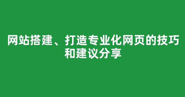 在当今数字化时代,网站已成为企业、品牌甚至个人展示自我的重要平台。一个专业化、用户友好的网站不仅能够提升品牌形象,还能增加流量和转化率。本文将分享一些关于网站搭建和网页设计的实用技巧与建议,帮助您打造一个专业、高效且具有竞争力的网页。