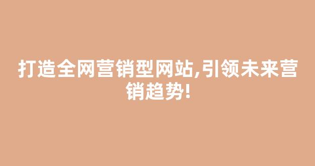 总结来说,全网营销型网站是未来营销的必然趋势。通过结合SEO、内容创意、社交互动等多种策略,企业可以在激烈的市场竞争中脱颖而出。